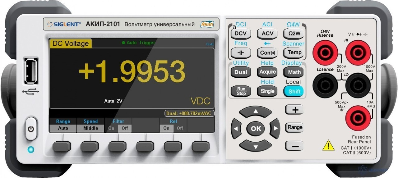 | Погрешность измерения | ± (0,015% Uизм. + 0,003…0,004% Uпредела изм.) в зависимости от диапазона |